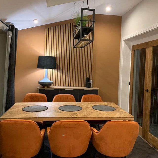 The Adria luxury solid wood dining table is a stunning interpretation of the modern industrial style. This beautiful, solid and well built dining table features a Parquet style tabletop. An authentic finish that is warm and tactile. Because of the nature of solid wood, every table will be unique and 1 of 1.