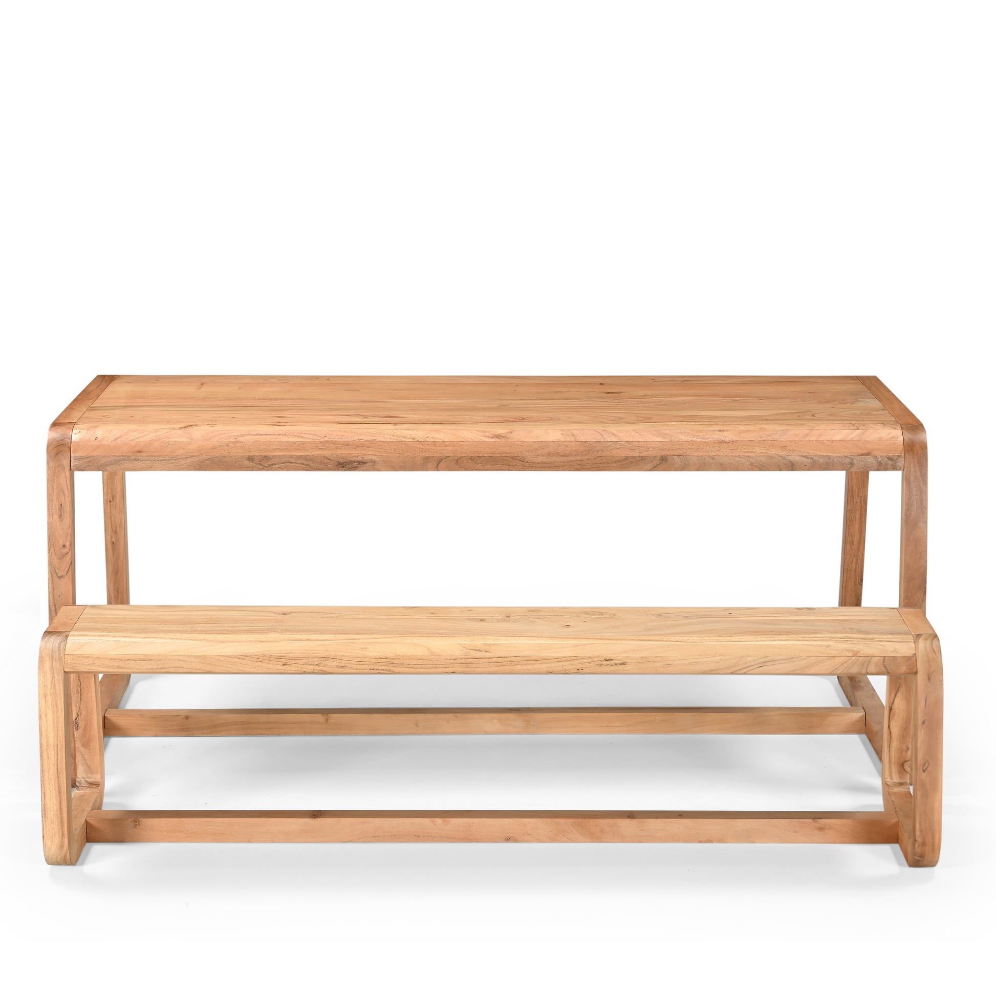 Amaya Solid Acacia Wood Dining Table and Bench Set