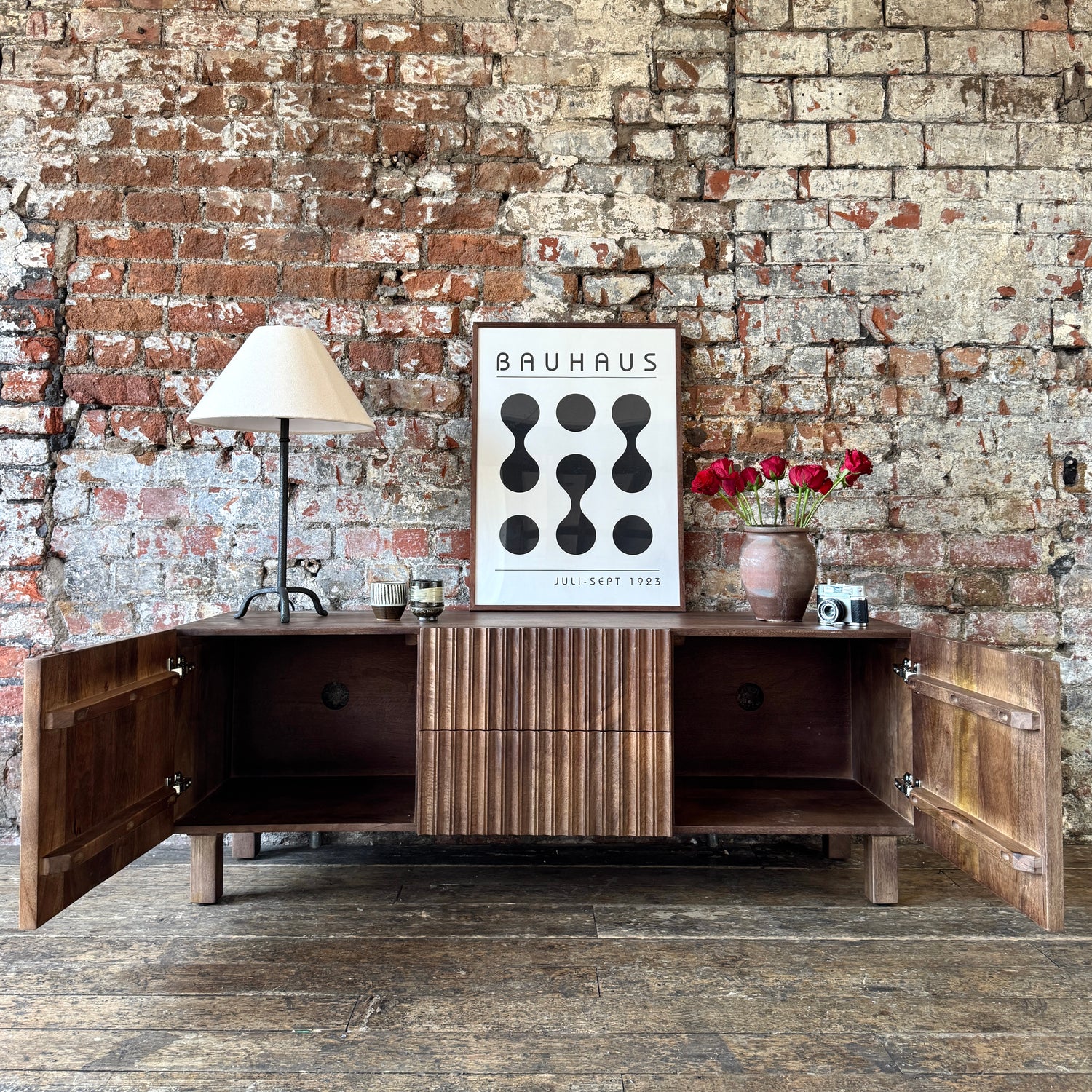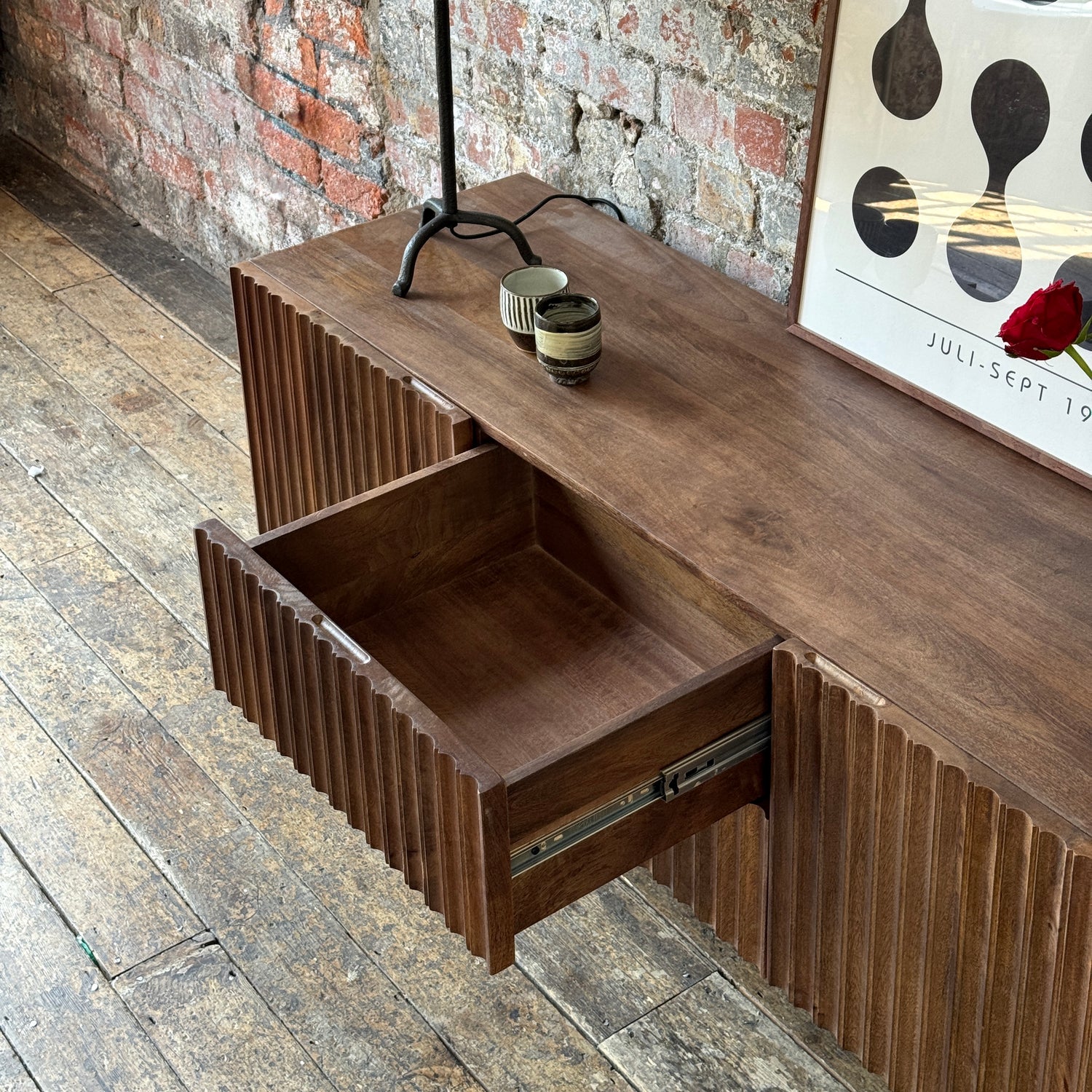 Arlo Solid Mango Wood 2 Door 2 Drawer TV Unit in Walnut
