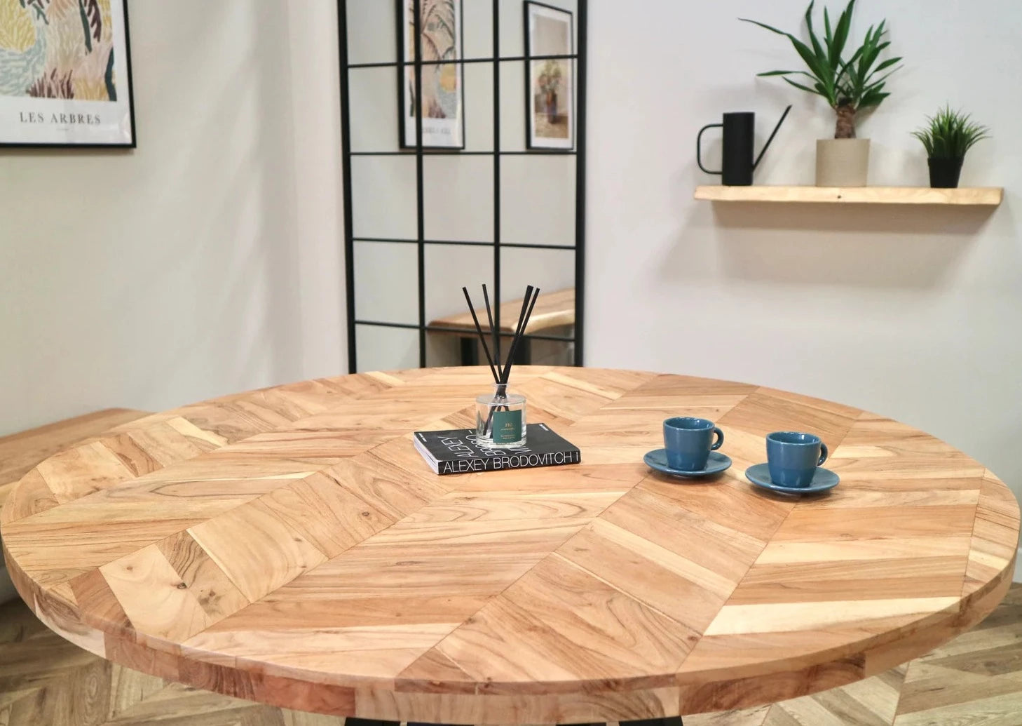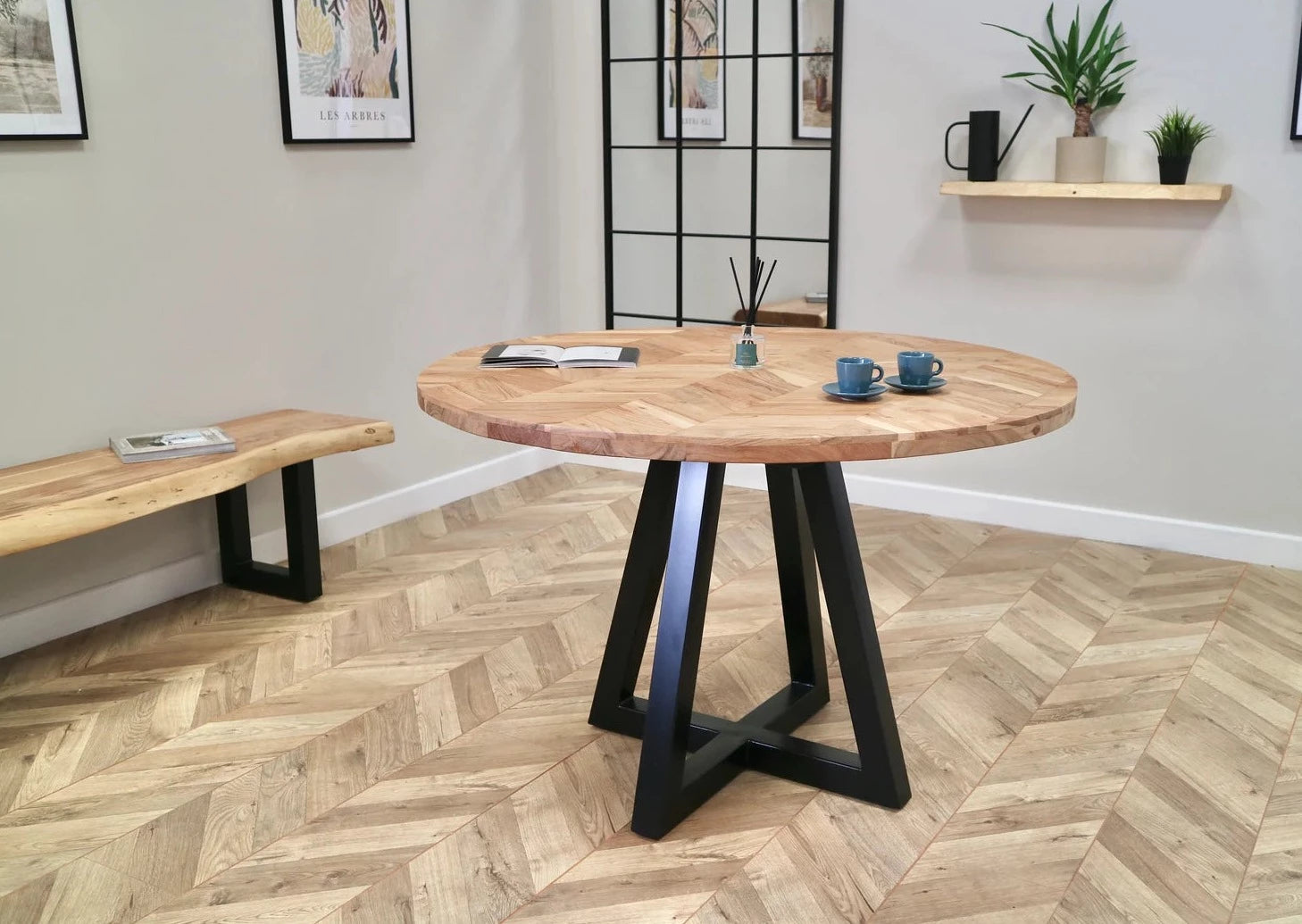 At 1.18m or 1.40m in diameter this stunning table will make a statement in any modern industrial style home. This table features an Acacia tabletop on a black powder-coated modern base. Solidly built and nicely finished. Produced with sustainability in mind.