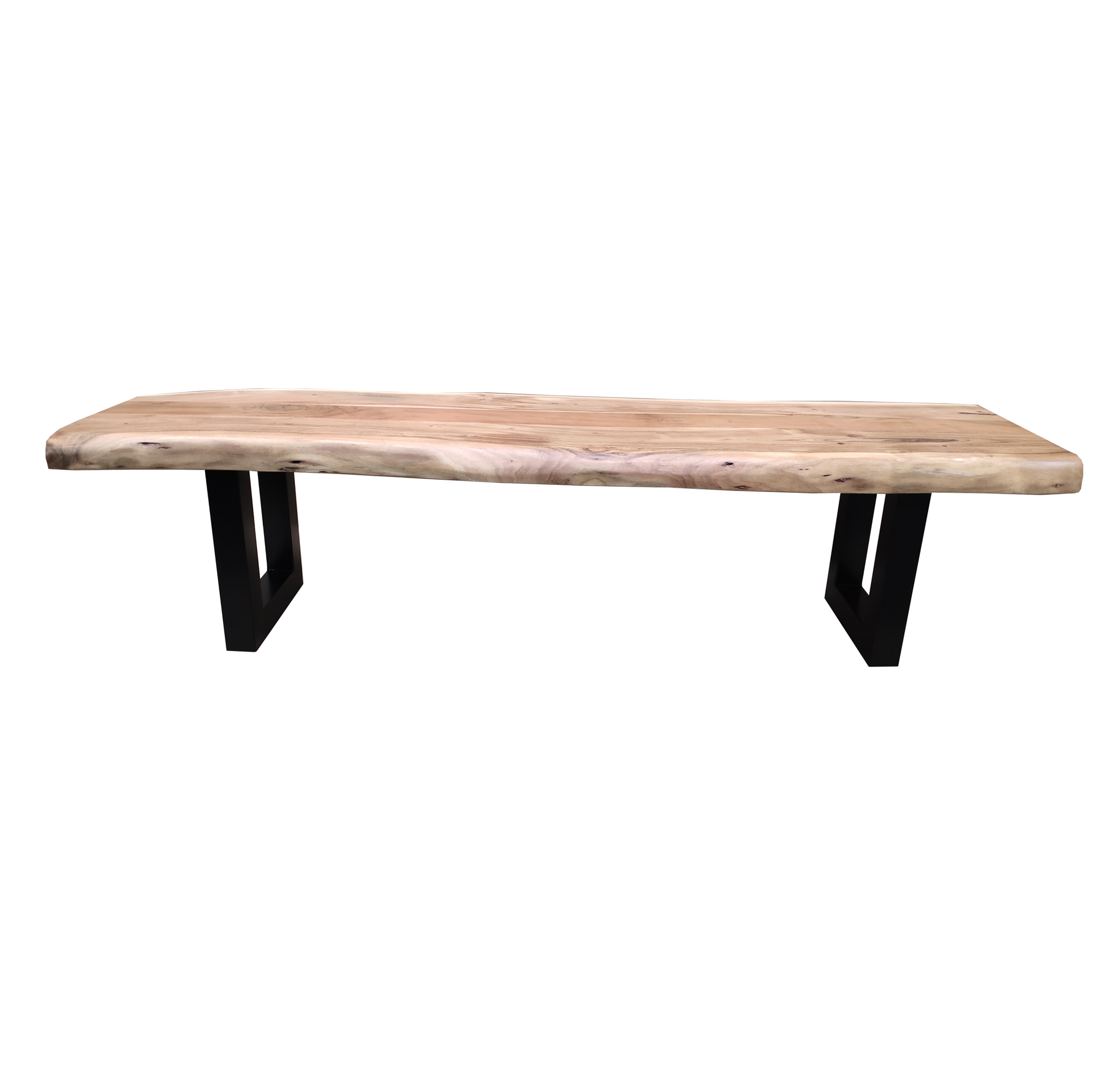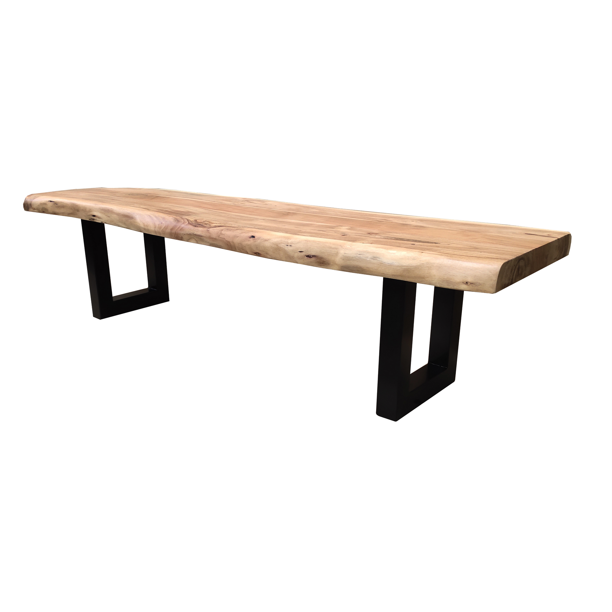 The Dalia dining bench is a stunning interpretation of the modern industrial style. Featuring a 60mm thick top with thick U shaped base. Creating a beautifully unique statement piece, featuring a beautiful live edge. Perfect for any modern, loft style dining space. Because of this style, every bench will be unique and 1 or 1.