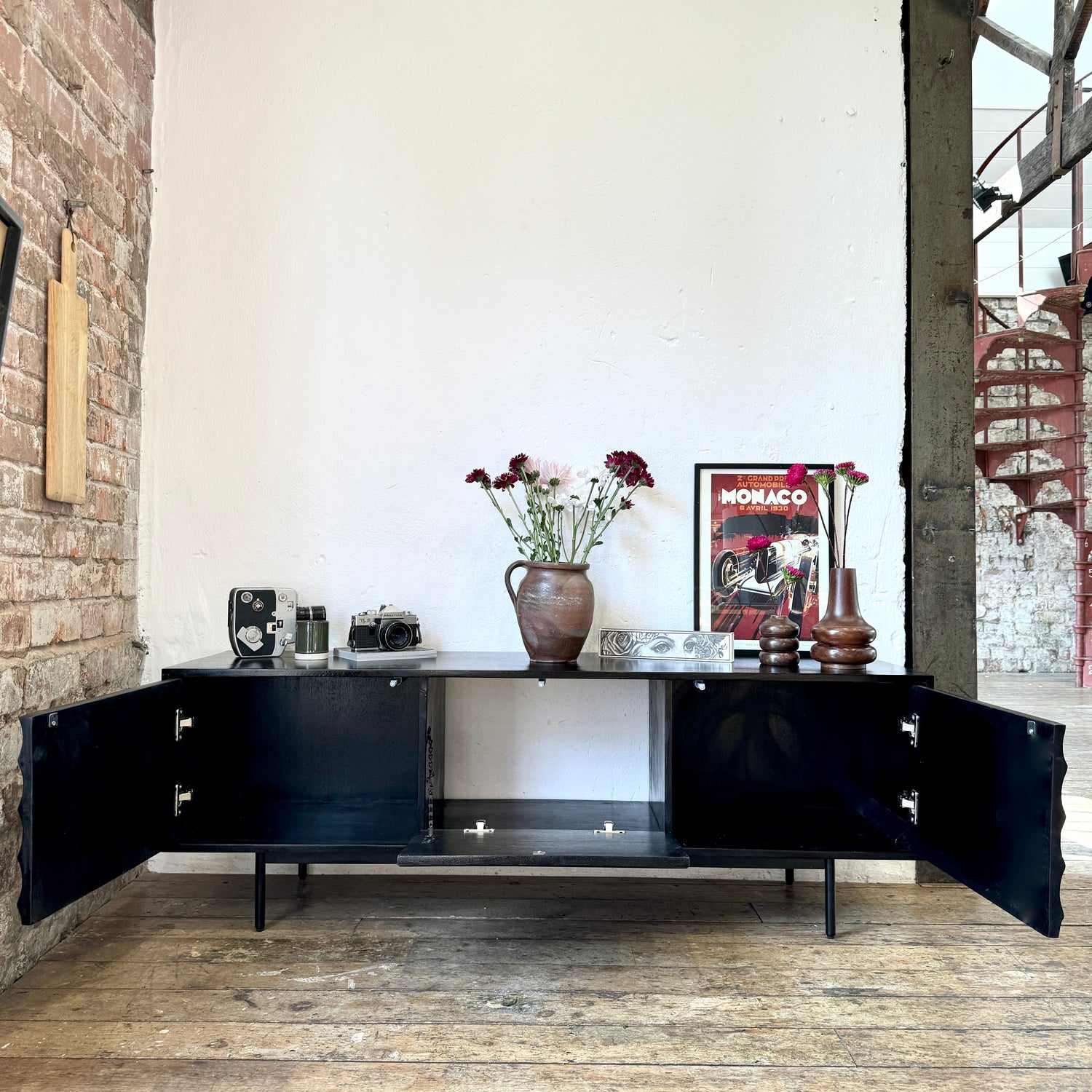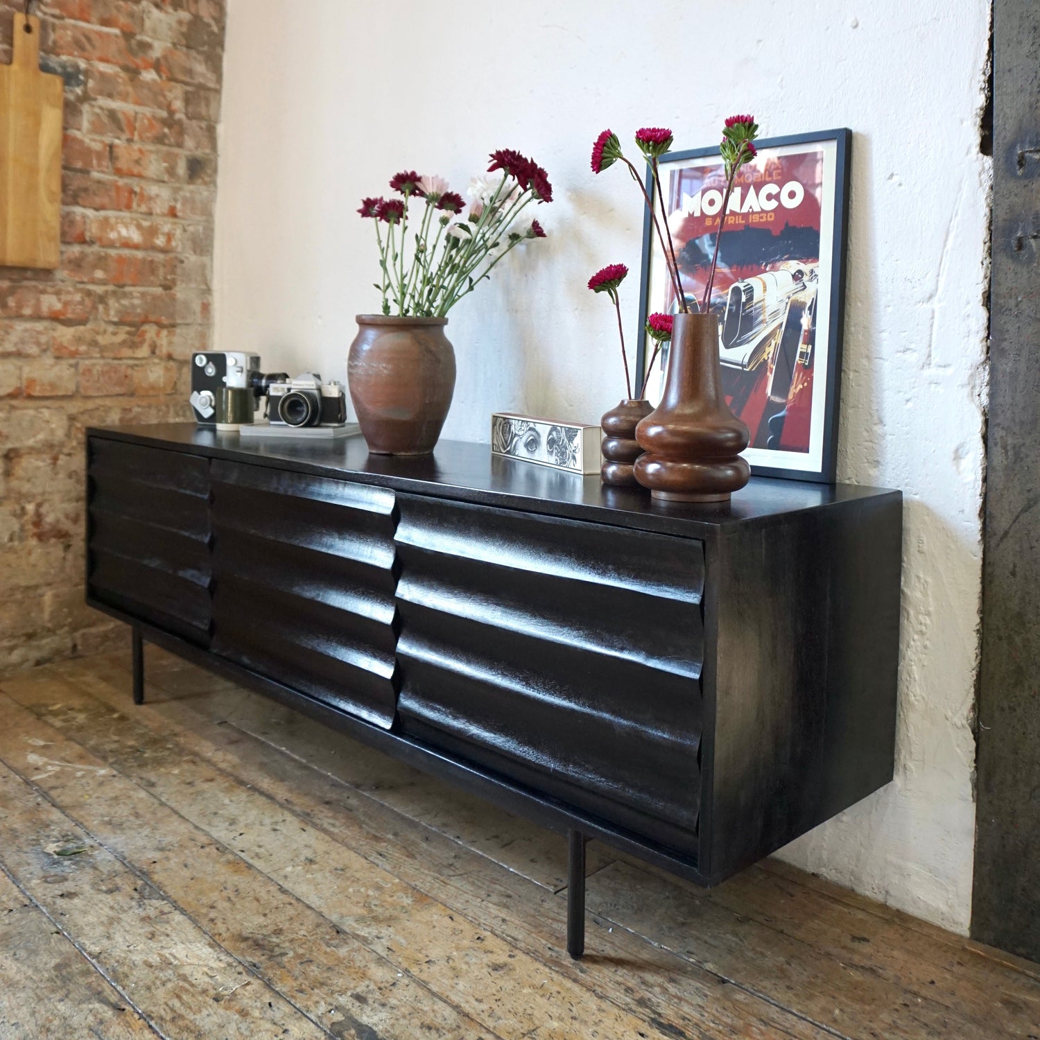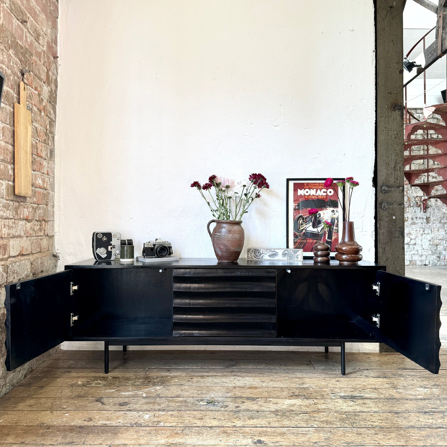 Introducing a truly unique design: The Daria stand. Who says wood should be flat? The graceful wavy designed doors of this TV unit are anything but ordinary, offering the perfect way to make a bold style statement in your home entertainment space.