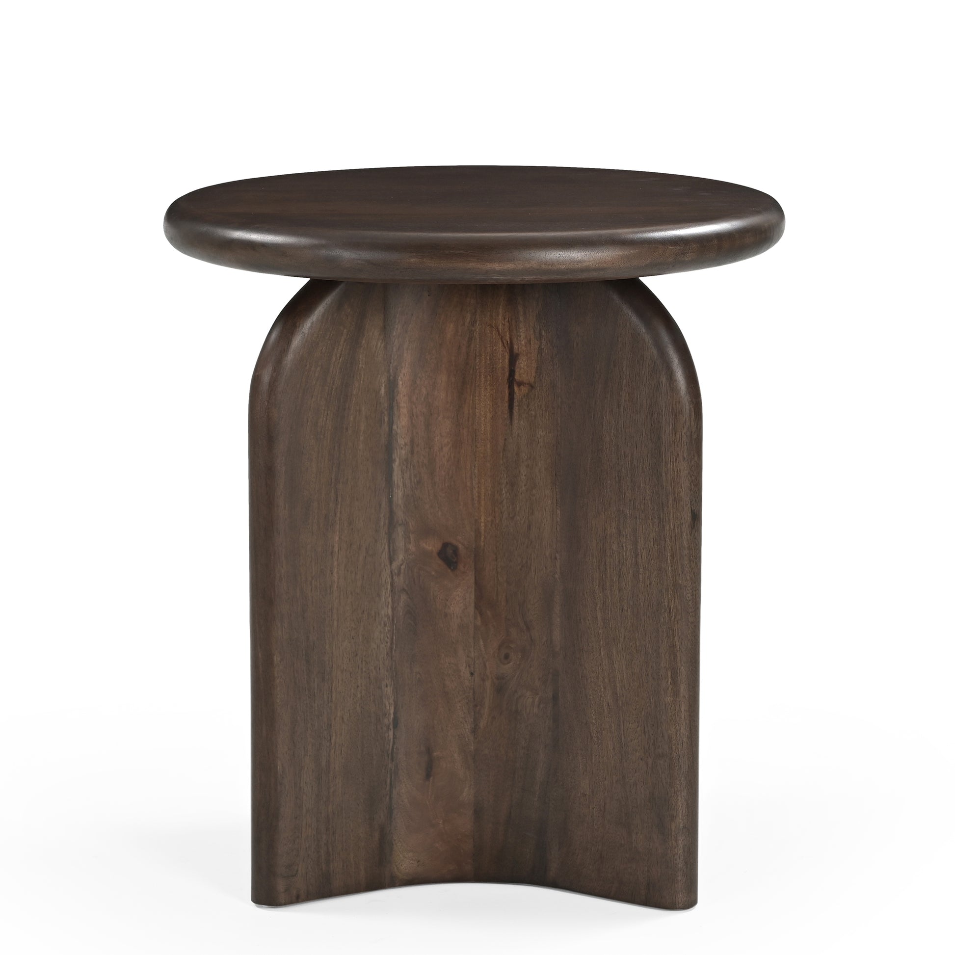 Add a touch of elegance and craftsmanship to your living room with this Eiji solid mango wood side table. Finished in a rich brown hue, the table beautifully showcases the natural grain and texture of the mango wood, making each piece unique.