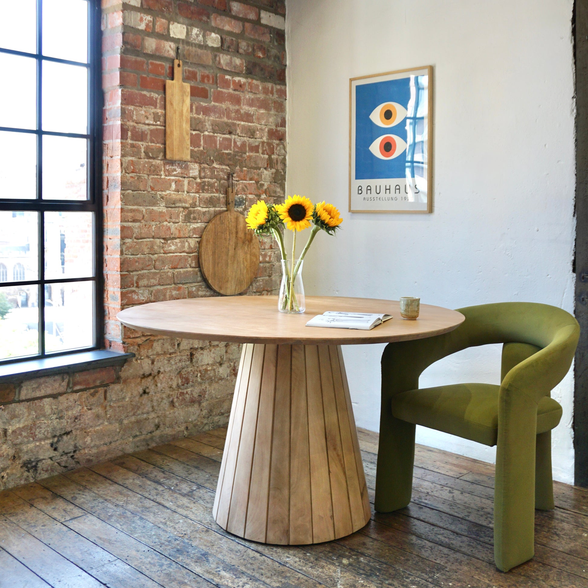 This table is thoughtfully designed with a pedestal-style base, combining aesthetic allure with practical functionality. The base design not only adds an artistic element but also maximises legroom, making it perfect for both intimate meals and larger gatherings. Available in three sizes, this table offers versatility to accommodate any space and occasion.