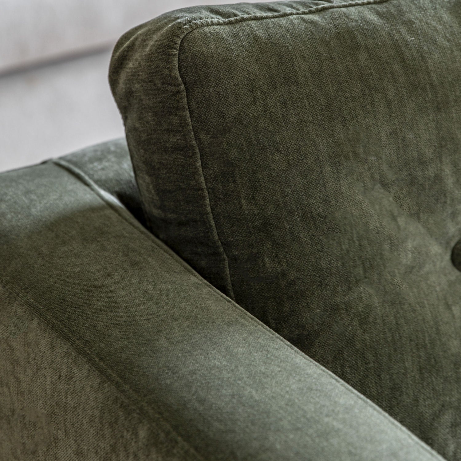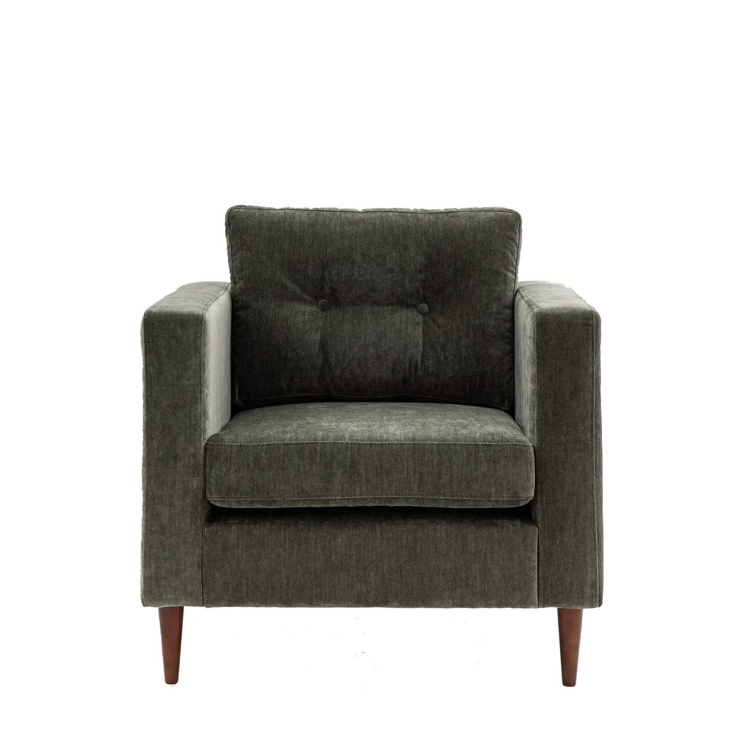 Introducing the Harlow Armchair in Forest – a harmonious blend of contemporary elegance and natural charm, designed to elevate your living space. This exquisite armchair, crafted with sleek lines, distinctive block arms, and meticulous button detailing on the back, is a testament to stylish modern design. Supported by elegant tapered wooden feet, the Harlow Armchair not only captivates with its visual appeal but also provides a comfortable and inviting seating experience.