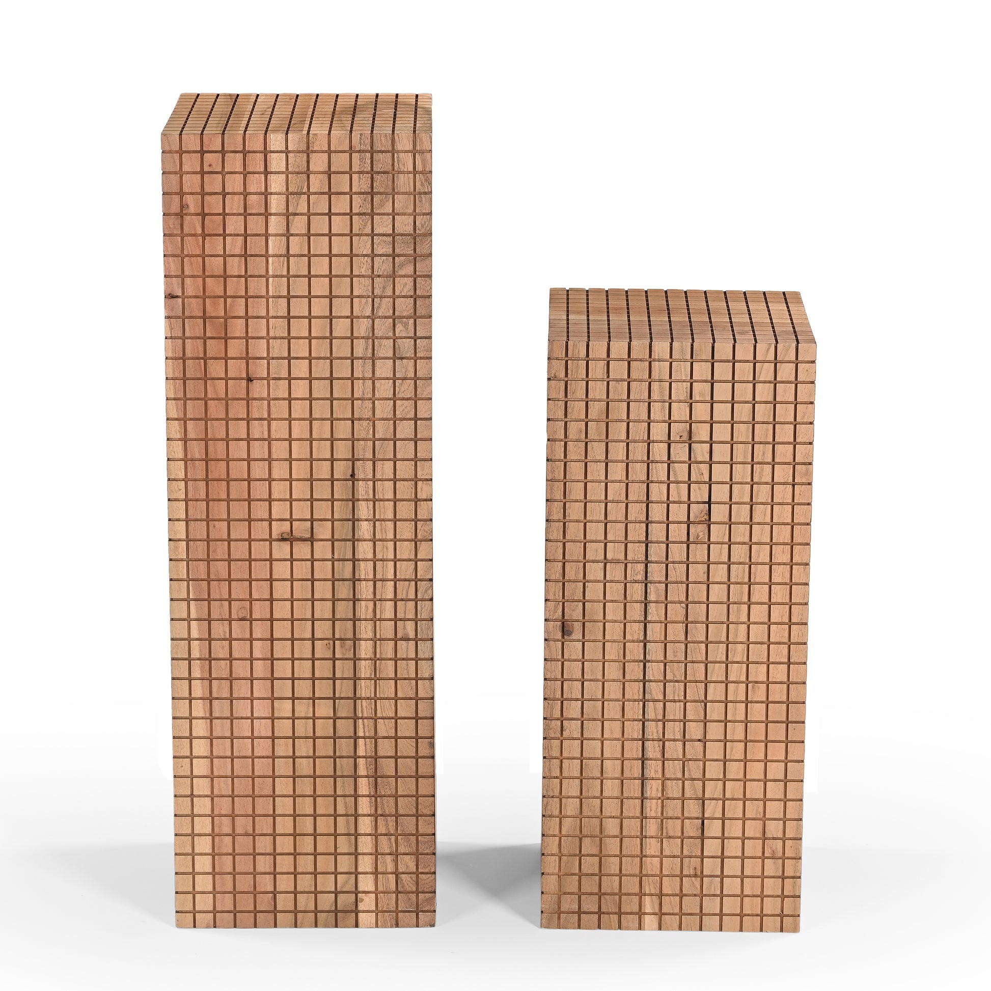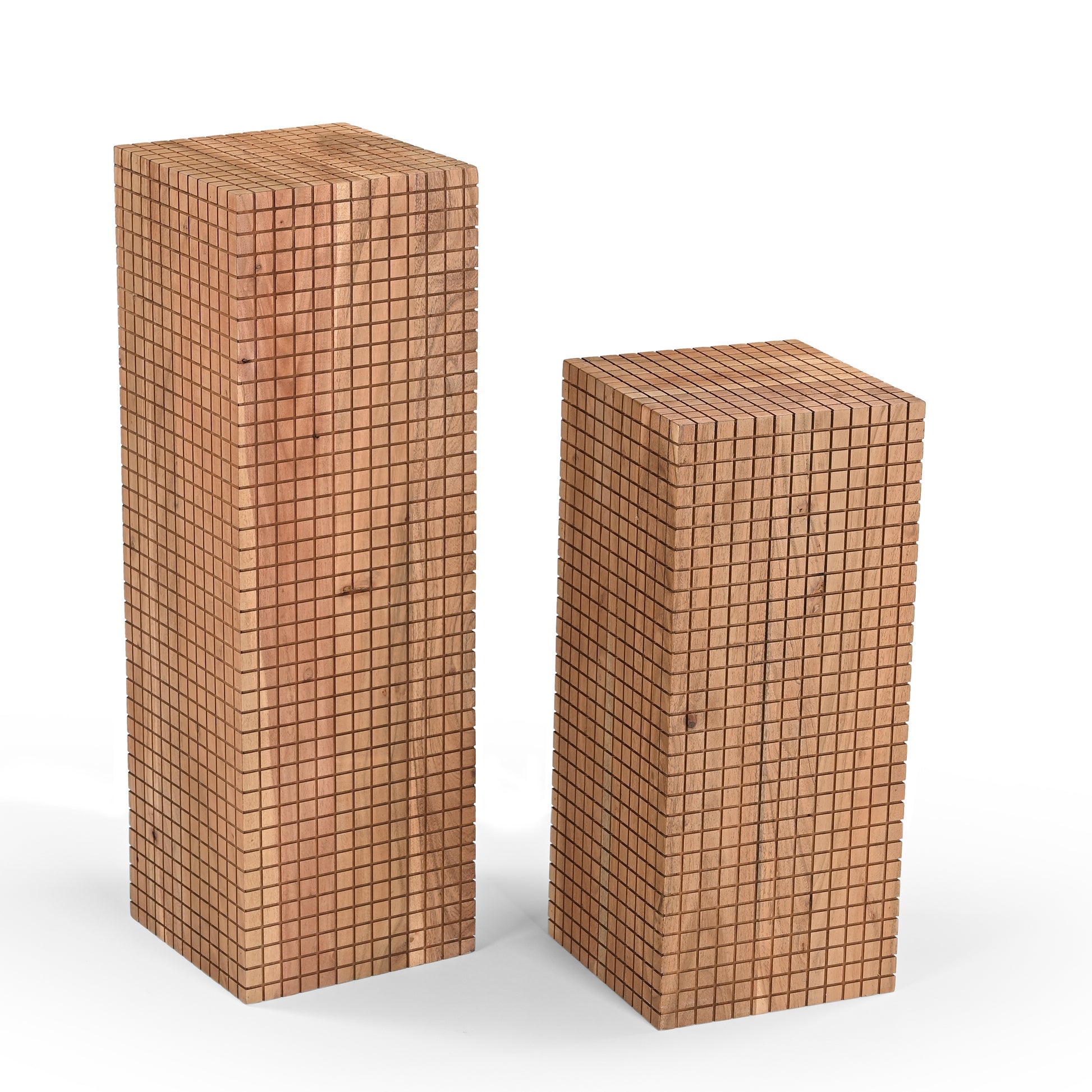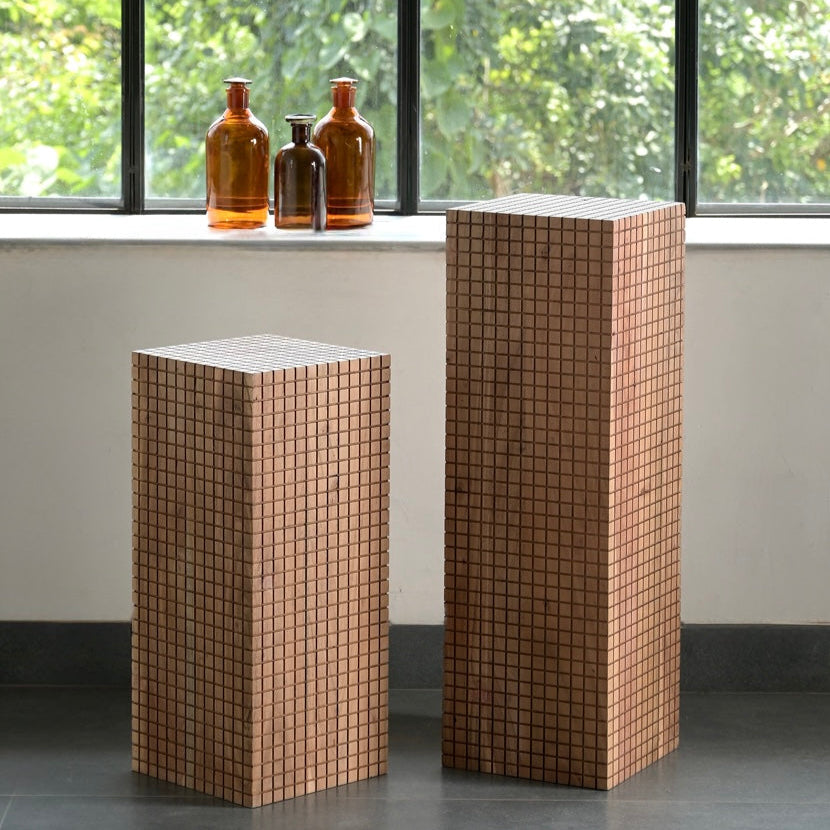 Perfect as a side table, pedestal, or statement accent, Jiro’s bold geometric texture and warm wood tones bring depth and personality to any interior. Whether styled alone or together, these handcrafted tables offer timeless appeal with a contemporary edge.