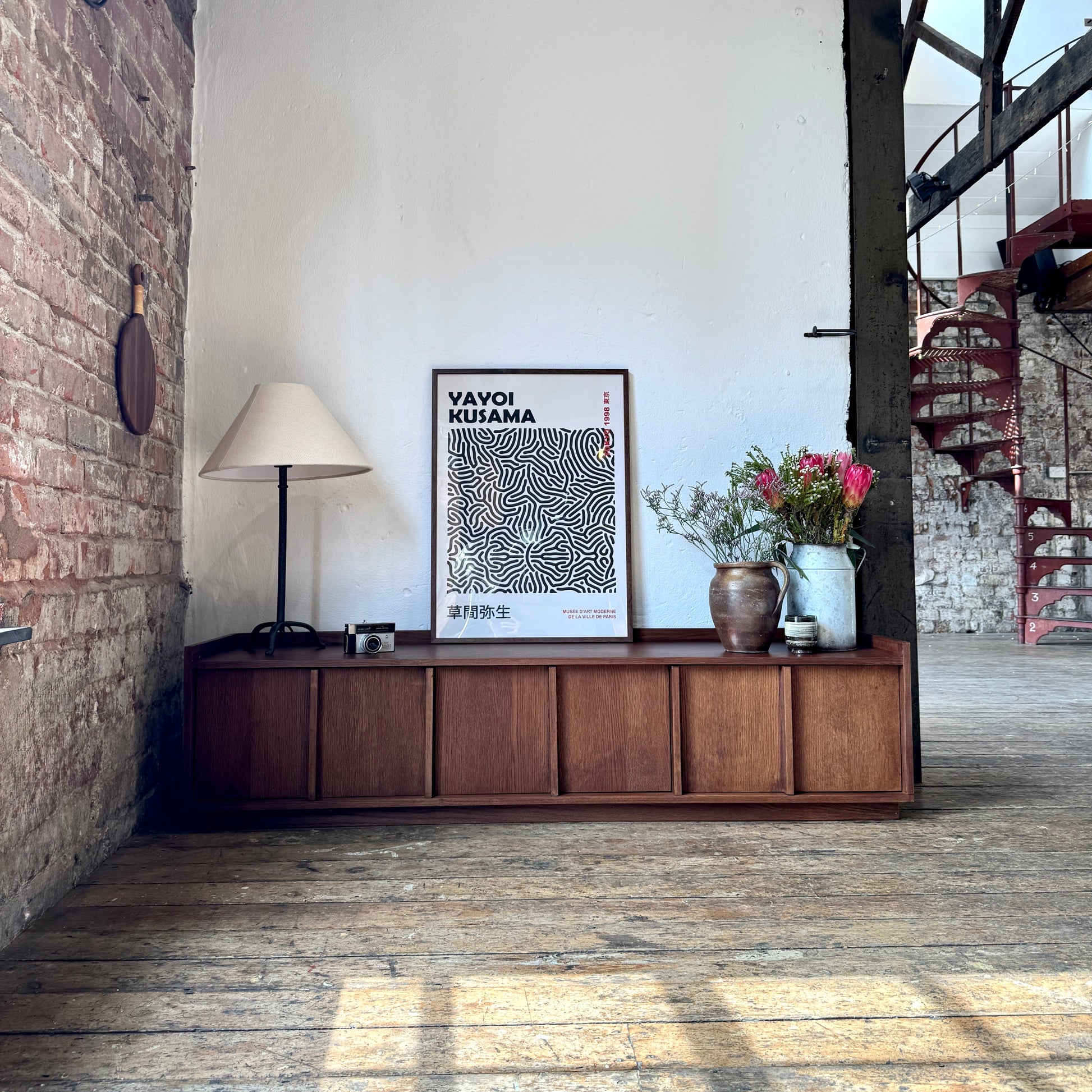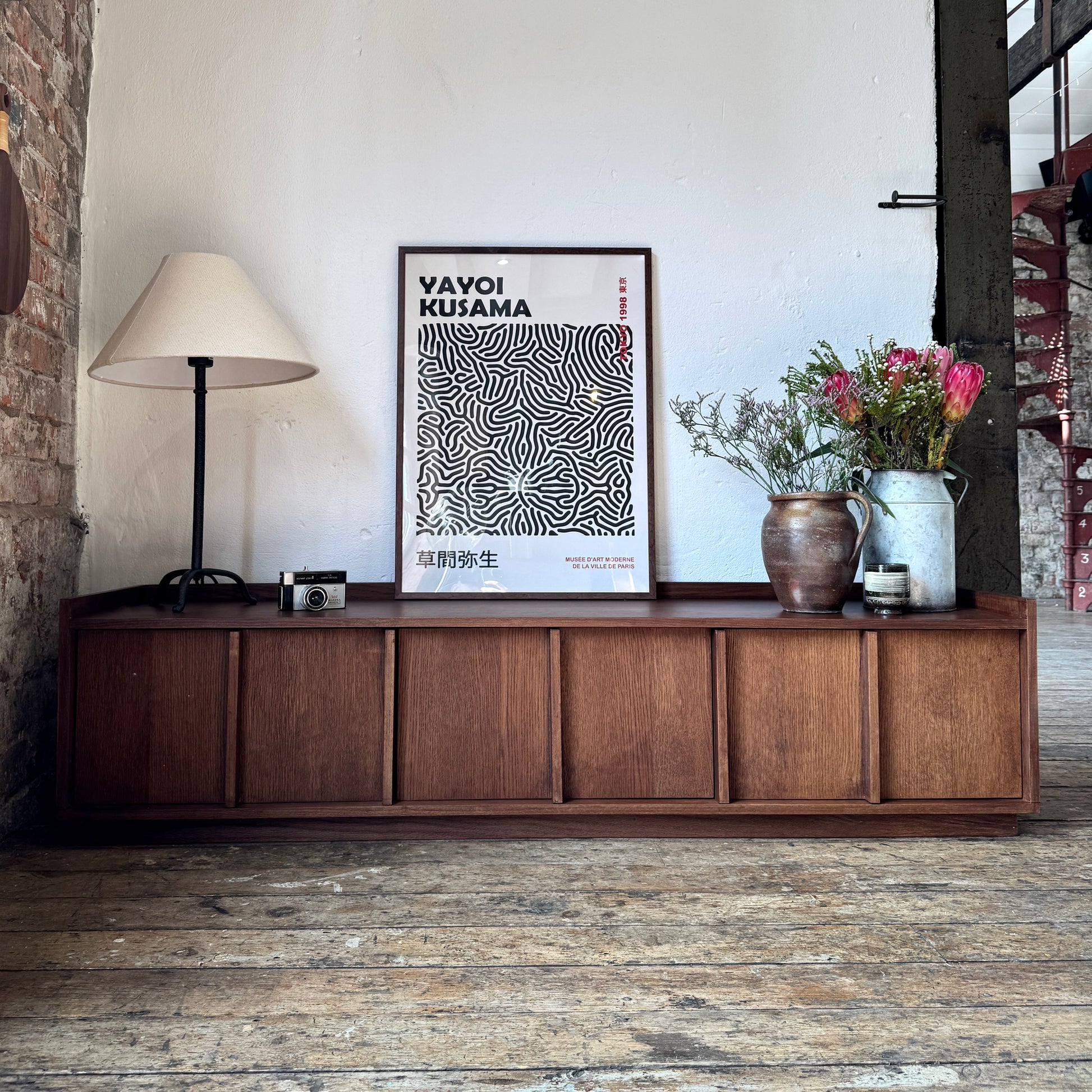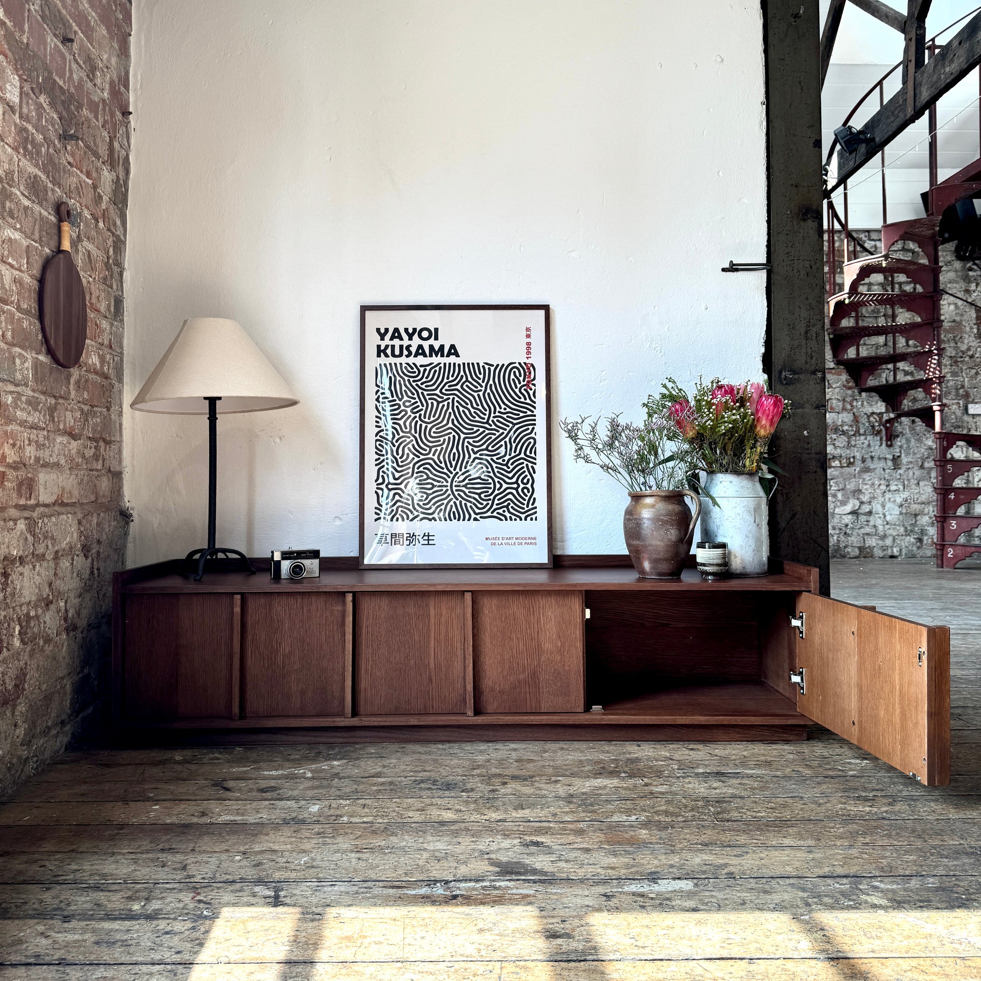 Inspired by traditional Japanese design, the Kyoto TV medium stand seamlessly blends minimalism with contemporary aesthetics, creating a sense of calm and tranquility in any living space. It's striking details add an authentic touch, while the deep, rich oak finish enhances warmth and sophistication. Crafted from solid oak and oak veneer, this media unit offers both durability and elegance. Thoughtfully designed for modern homes, it provides ample storage for media devices and accessories, ensuring both style and functionality. The Kyoto TV Stand is a statement piece that brings balance and harmony to your interior.