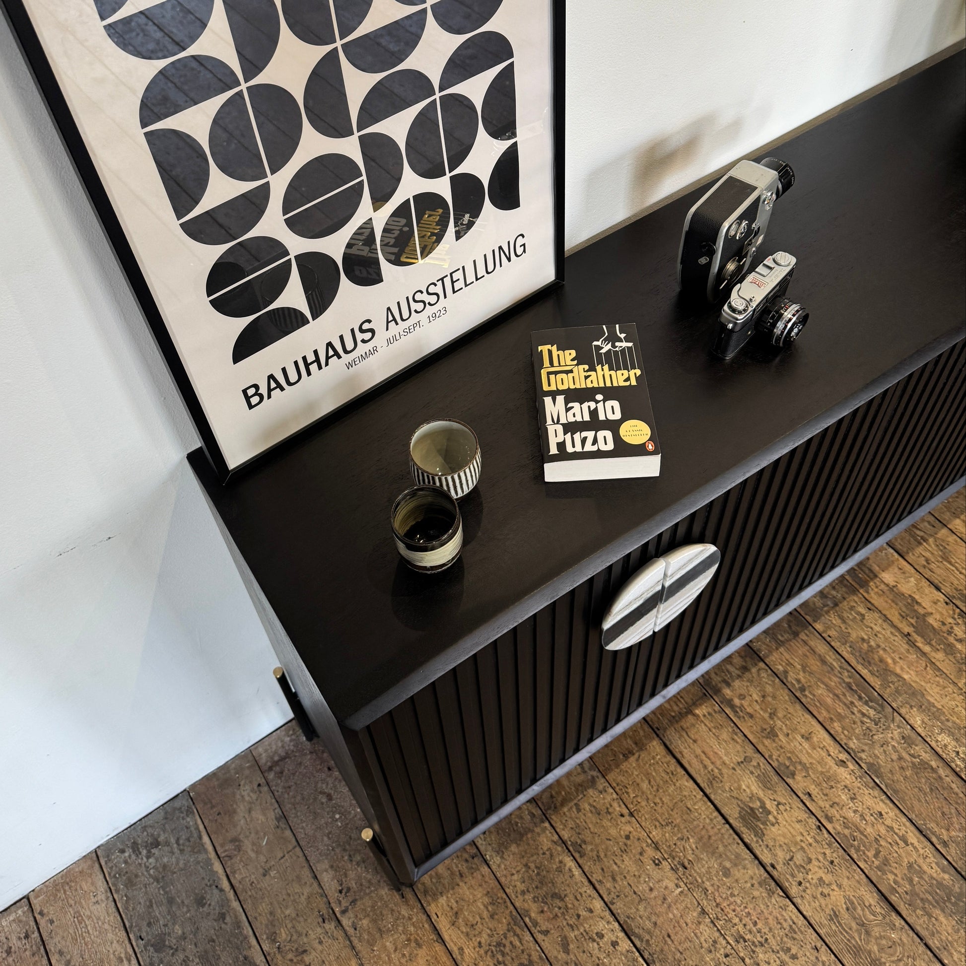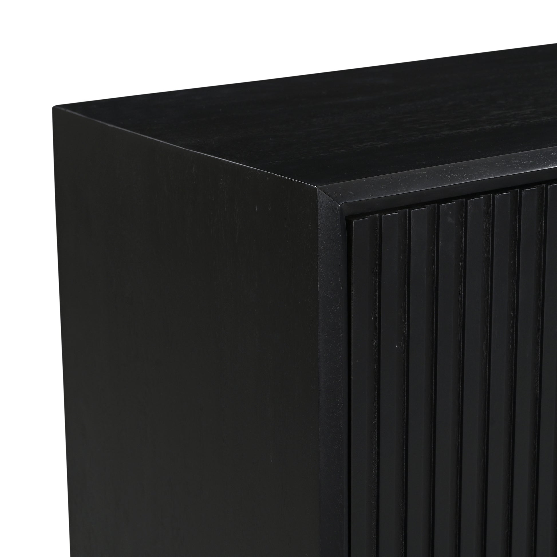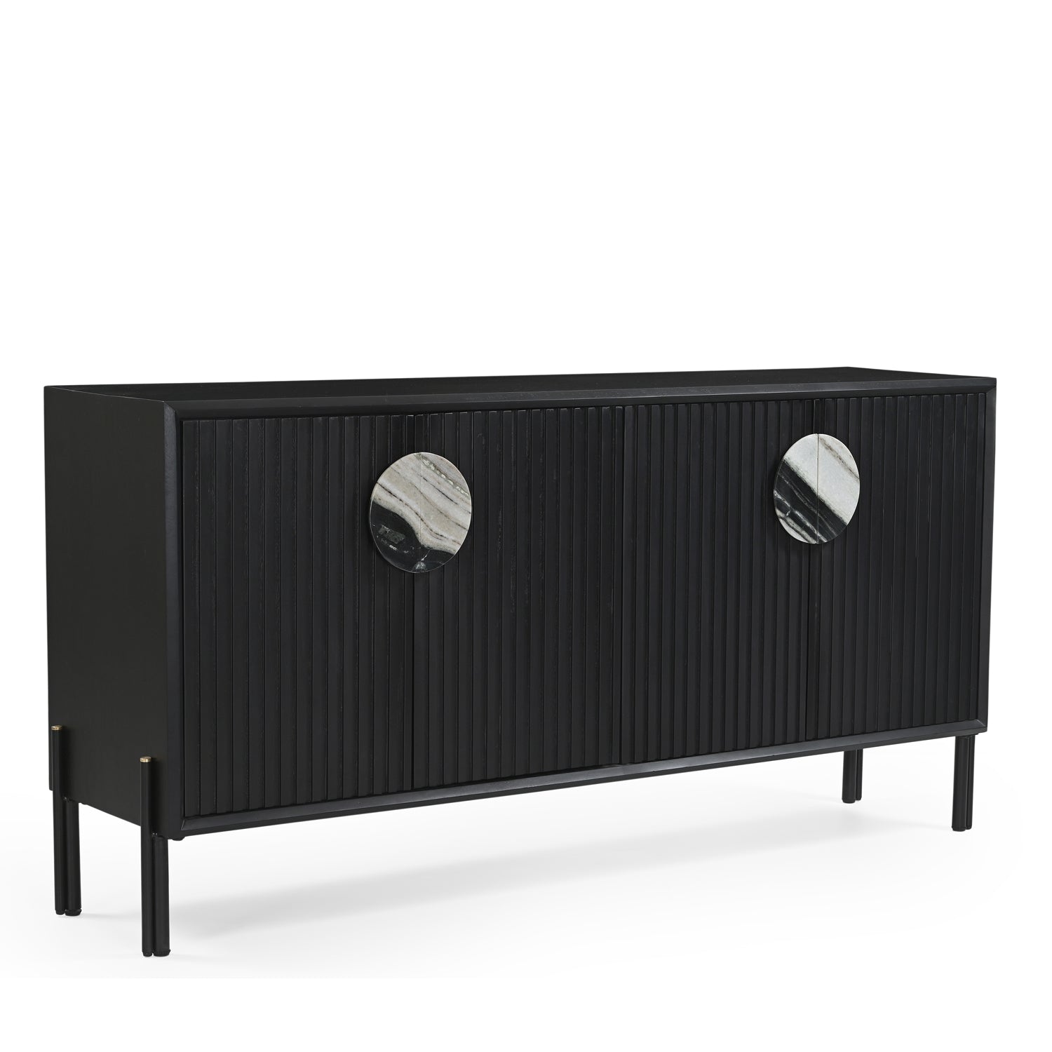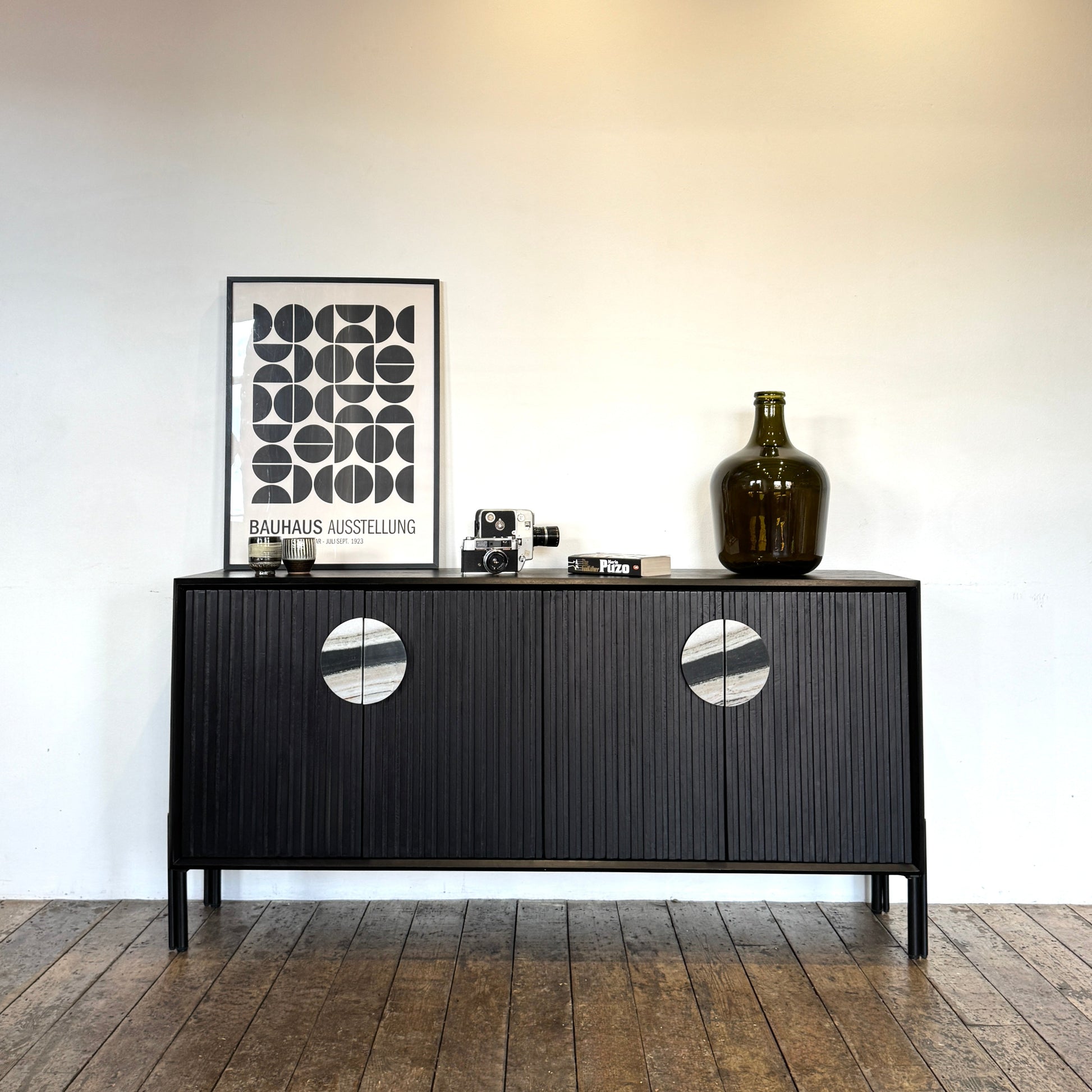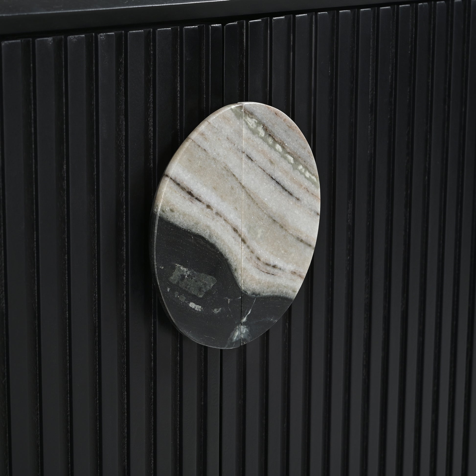 The sideboard features exquisite ribbed detailing on the doors, adding texture and depth to the design. The luxury marble handles provide a stunning contrast to the black finish, offering a refined and elegant touch. With ample storage space behind the doors, the Madison Sideboard is ideal for storing everything from dinnerware to electronics, helping to keep your home organised while adding a stylish focal point to your space.