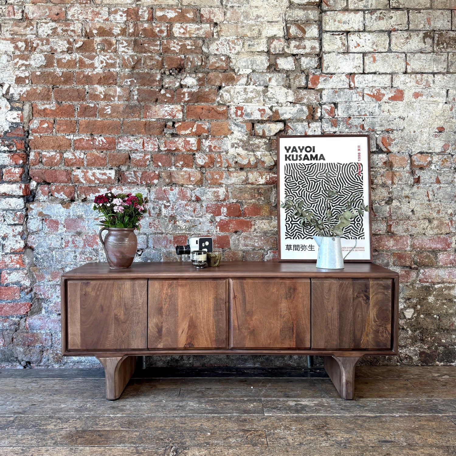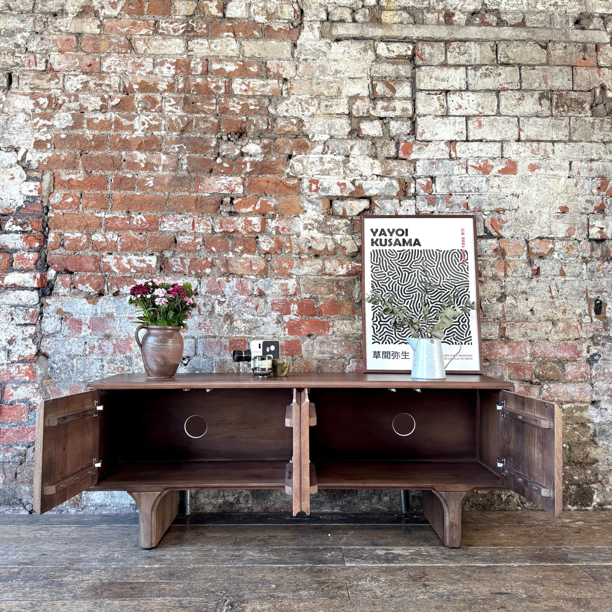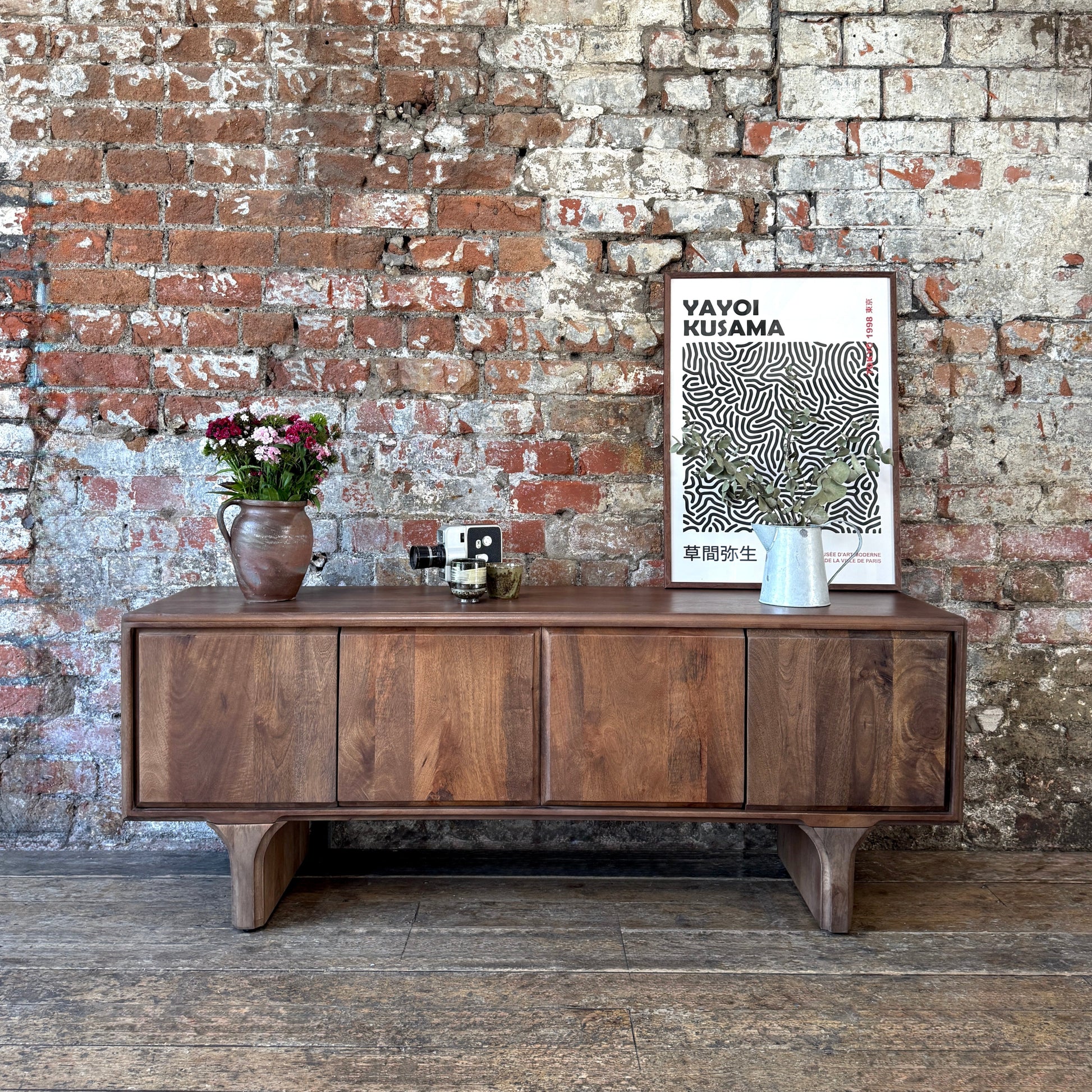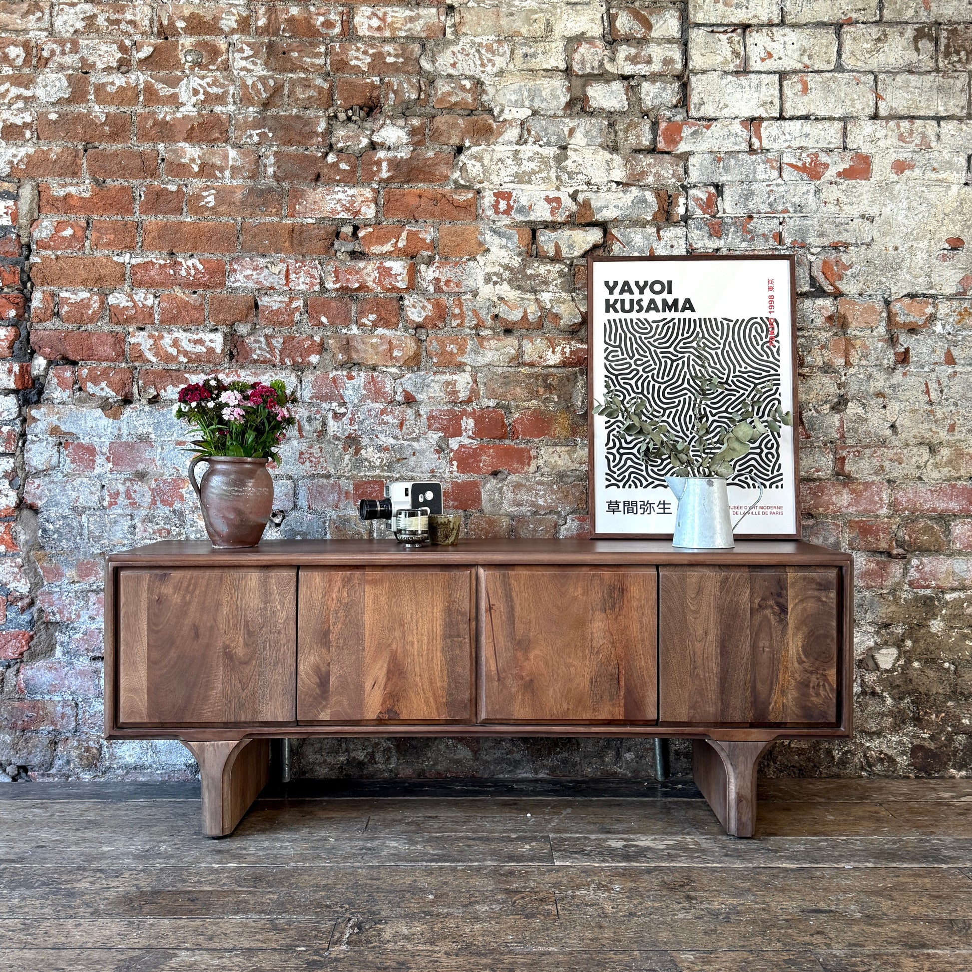 Milo Solid Mango Wood 4 Door TV Unit in Walnut (2 Sizes)