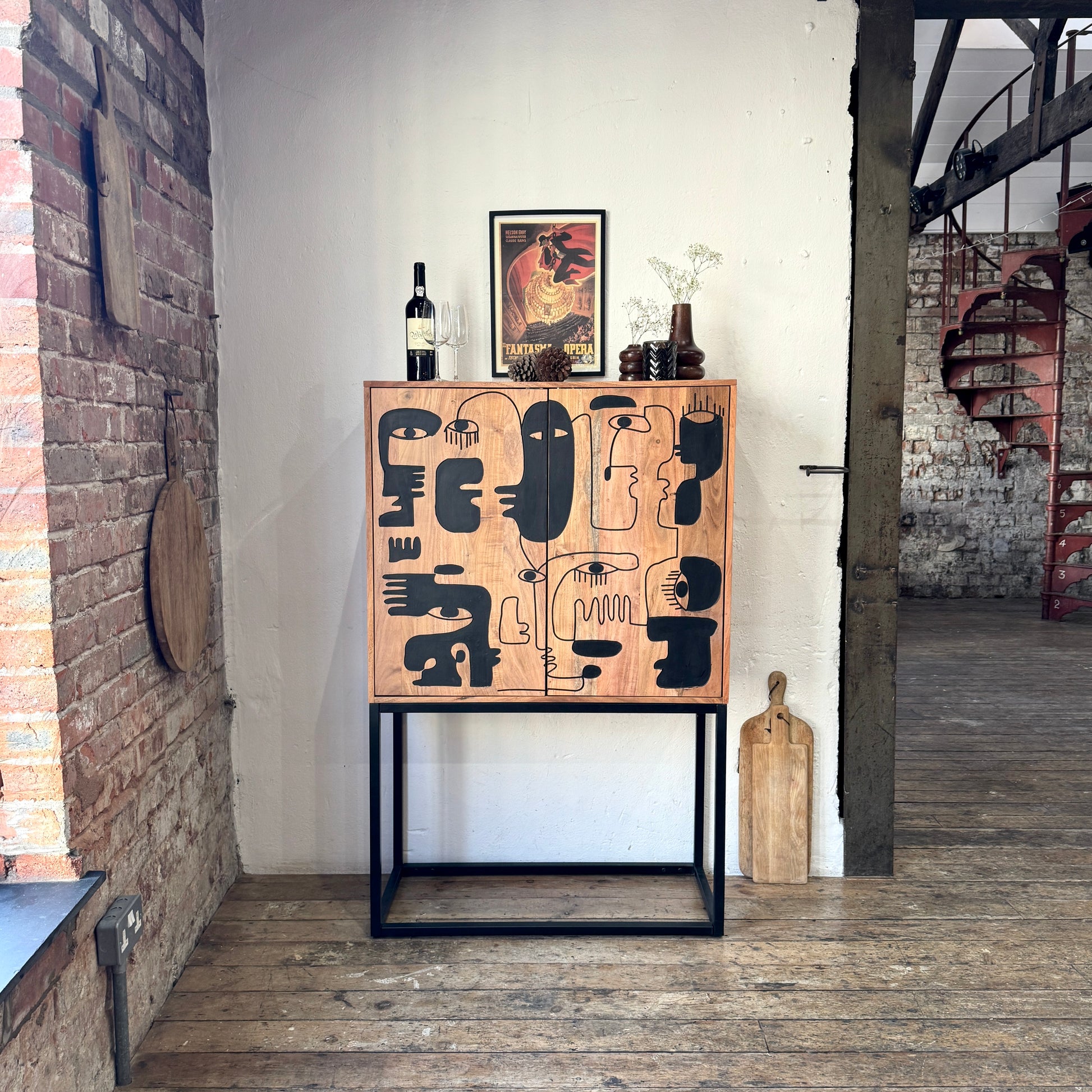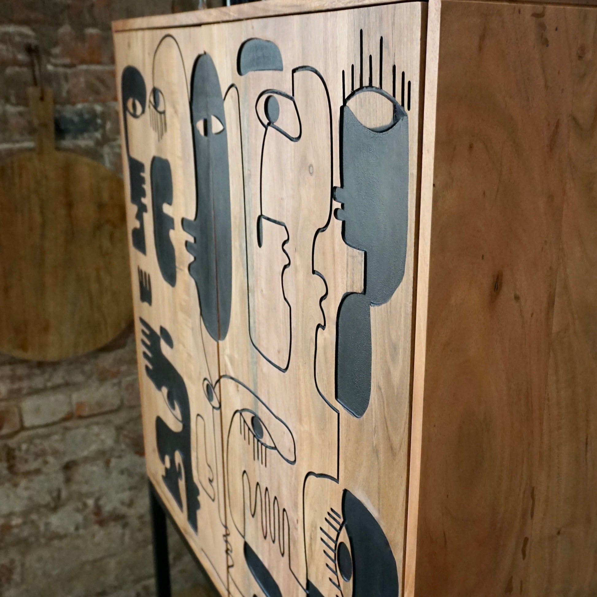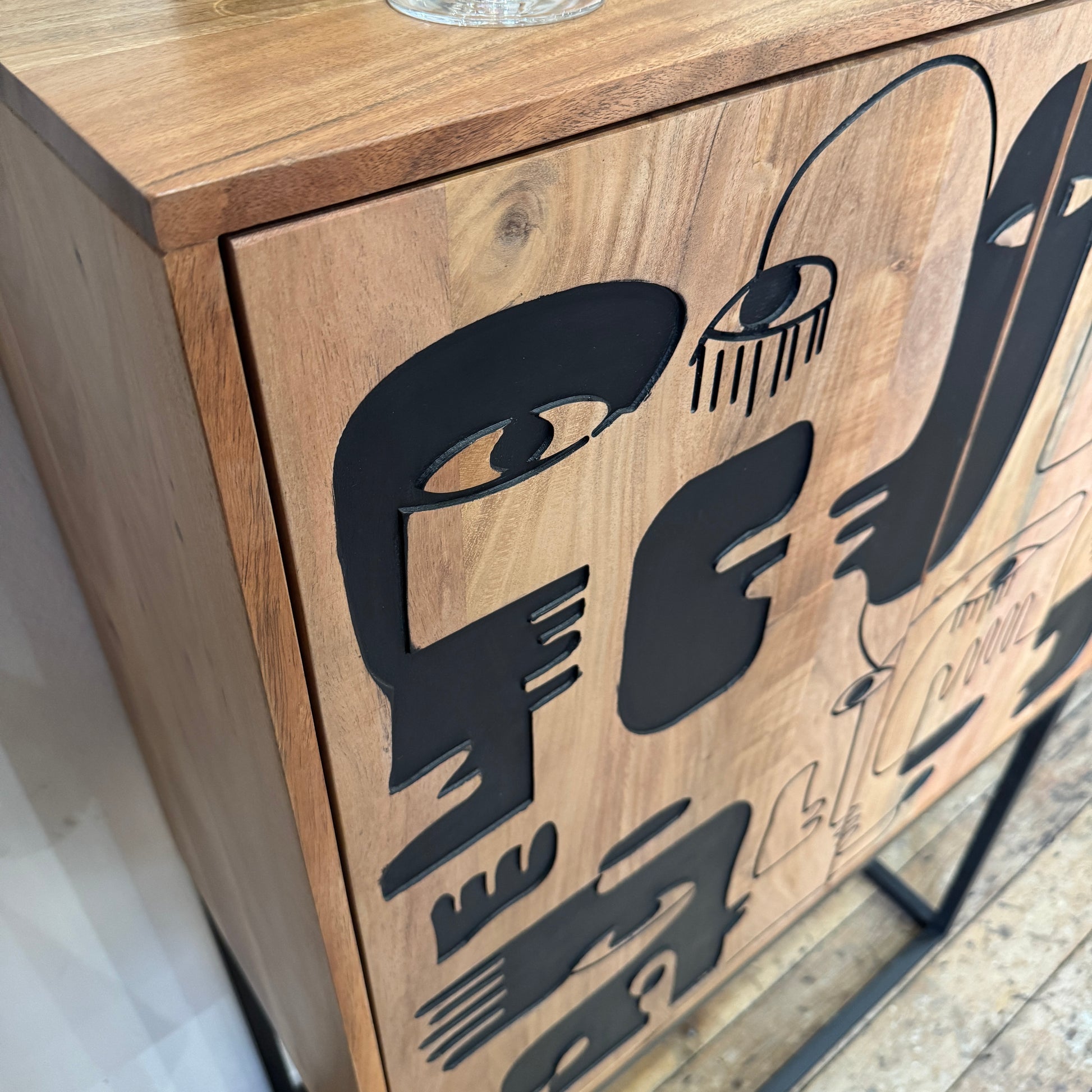 Finished in a rich natural teak colour, the warm tones of the acacia wood are beautifully highlighted, adding an inviting touch to your decor. The true standout feature of the Pablo highboard is the Picasso-inspired artwork adorning the doors. This bold black design transforms the piece into a captivating work of art, making it a conversation starter in your home.