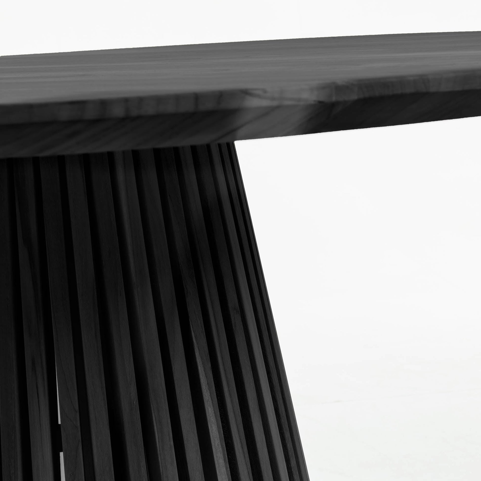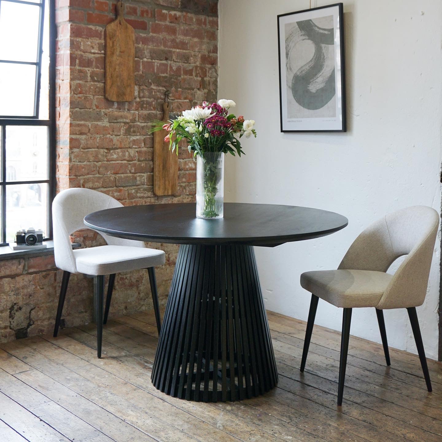 The wonderful Remi dining table is produced from solid Mango wood to create this exceptional artistic piece. This sensational statement piece is a beautiful interpretation of northern Nordic style, crafted from solid Mango wood. This stunning table will make a statement in any modern home. Handmade to perfection! Finished in black. This beautiful dining table comes with 2, 4 or 6 Bella chairs in Stone.
