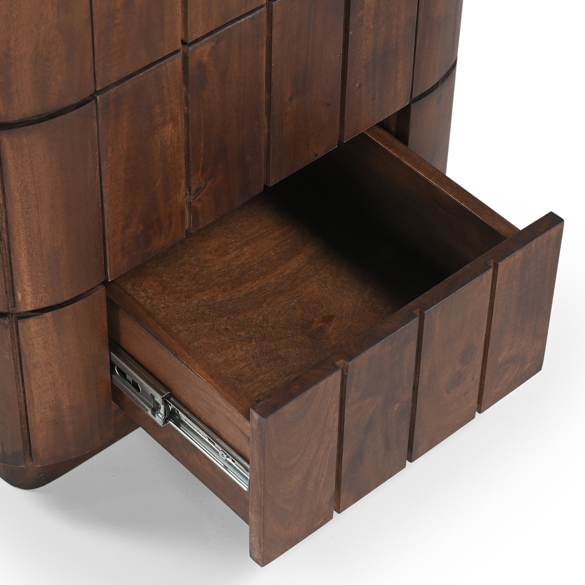 Bring warm, contemporary elegance to your bedroom with the Roka Acacia Bedside Table. Crafted from solid acacia wood and finished in a rich dark brown tone, this piece highlights the natural grain and depth of real timber.