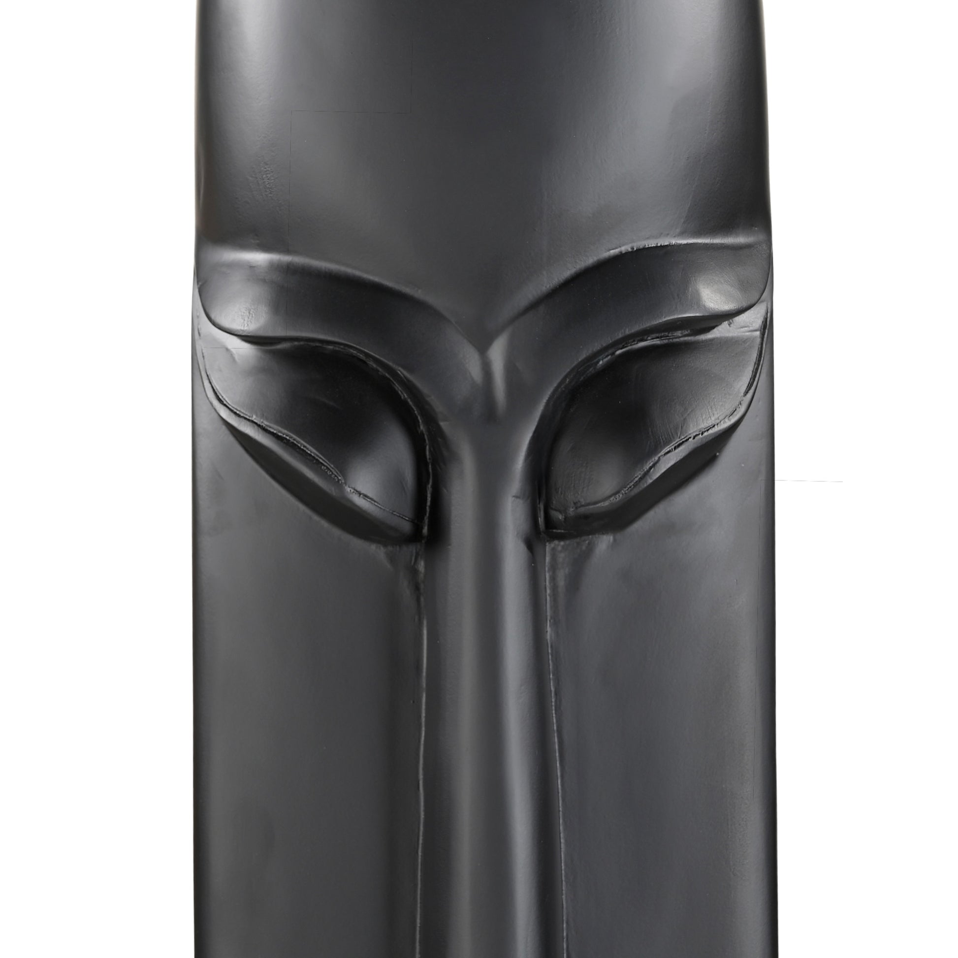 Carved by hand from solid mango wood and finished in a deep black tone, the oversized head captures the timeless power and mystery of ancient artistry. The texture and finish are carefully applied by hand, enhancing every angle and curve with a rich, matte depth.