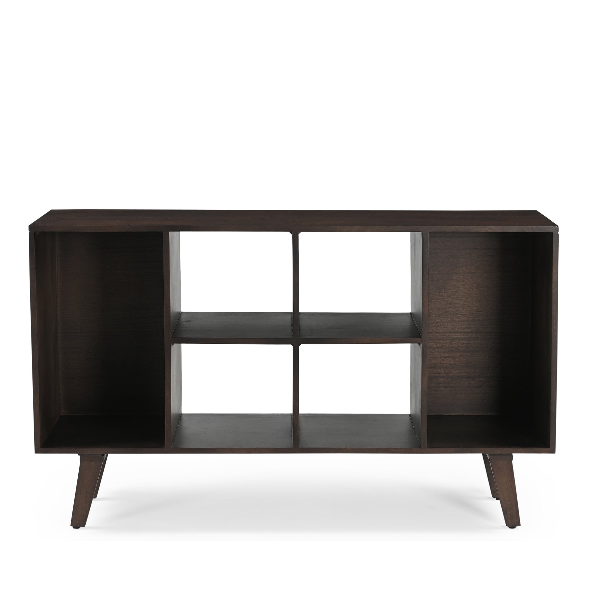The Wax Large Sideboard is a stunning blend of style and functionality, expertly crafted from solid mango wood and finished in a rich walnut tone. Designed with music and media lovers in mind, it features two spacious openings on either side, perfect for storing your vinyl collection, and four central compartments ideal for 7 inch vinyls, books, ornaments, speakers, or other media equipment.