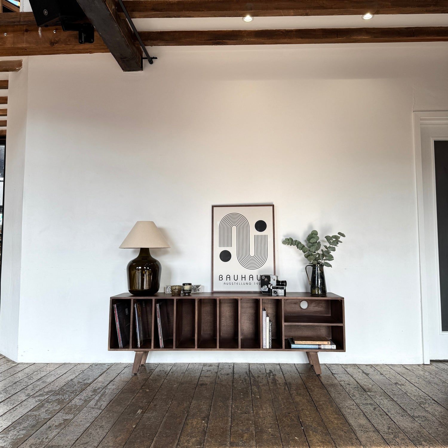 The deep walnut finish enhances the natural grain and texture of the mango wood, creating a sophisticated yet warm aesthetic. With a spacious surface for your TV and open storage compartments for easy access to records, books, or media devices, the Wax unit is as practical as it is stylish.