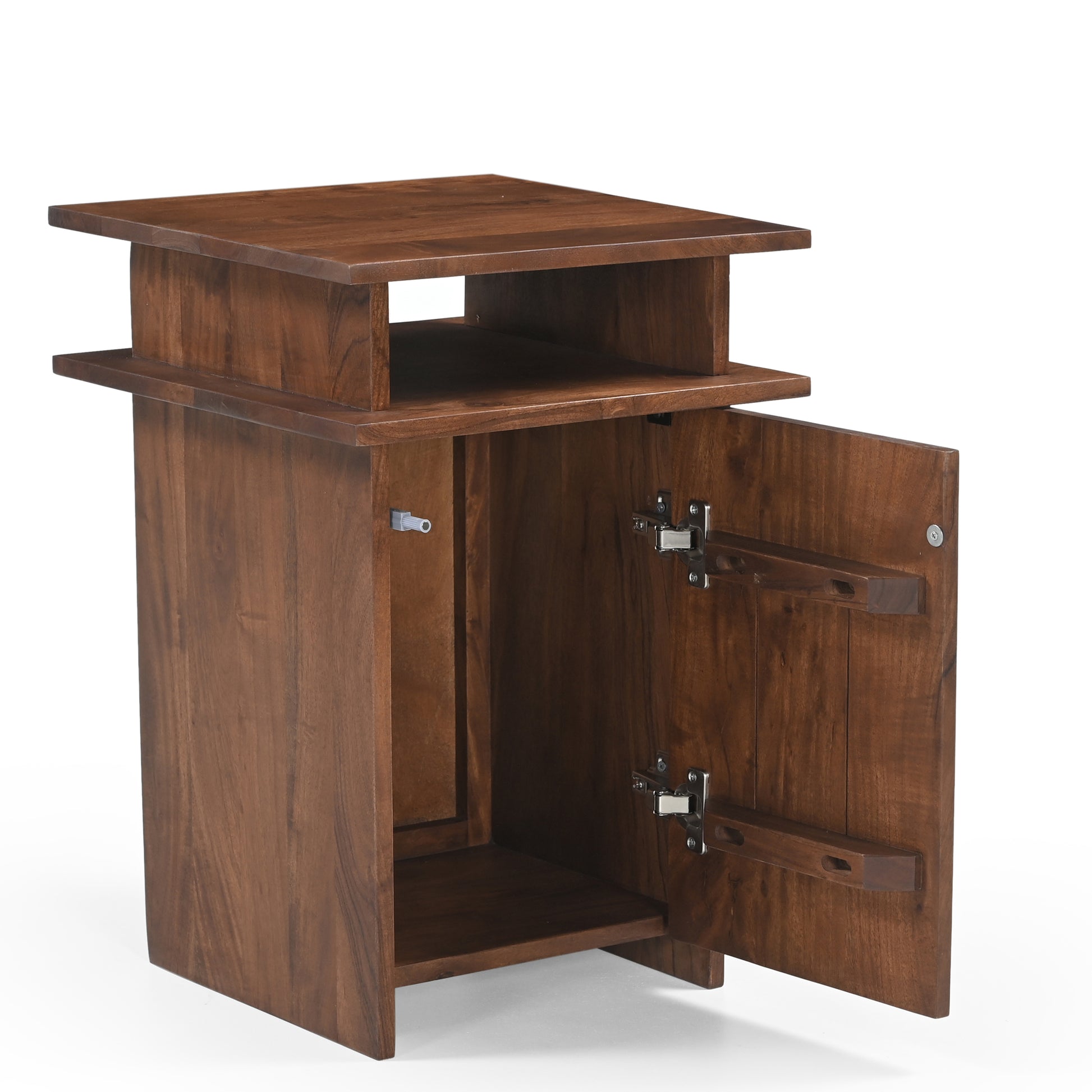 Yamato Solid Acacia Wood Bedside Table in Walnut